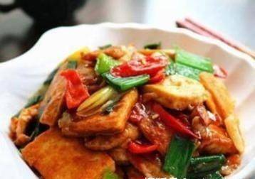 4、水燒開後,放入炸好的豆腐,用文火煮片刻,加入水淀粉、青紅椒、味精、蒜苗翻炒片刻,即可食用。