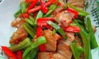 原料:南瓜250克,五花肉150克,青紅椒各30克,大蒜、薑片各5克。美極鮮醬油5克、鹽2克、味精2克、蠔油3克、胡椒粉、香油適量。