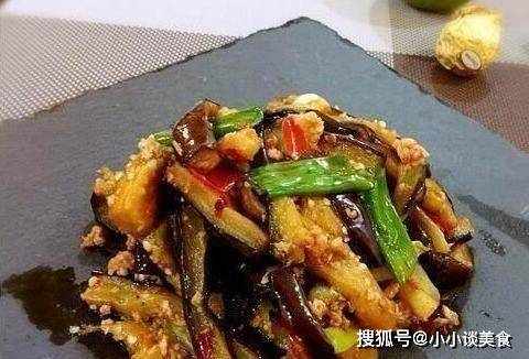 4.然後加入炸好的茄子翻炒,加少許鹽,適量生抽,多放點糖和適量水,翻炒,再加入少許雞粉,撒上切碎的白菜,洋蔥和服務可以;