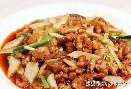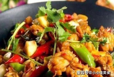 5.鍋裡放油燒熱,加入牛蛙炒至幹酪狀,撈出備用。