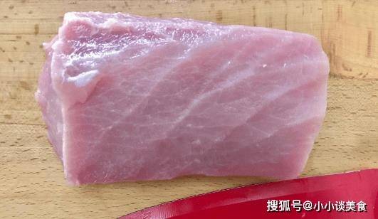 將豬肉切成約。四厘米長的條,一定要順著豬肉的線條切開,然後放入鍋中,加入沒過豬肉的冷水,大火燒開,繼續煮五分鐘。時間到瞭,取出豬肉。出來洗漱。