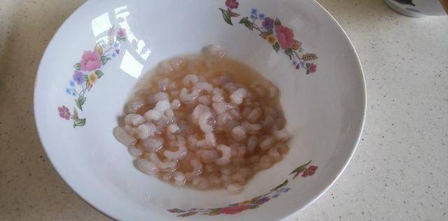 3.蝦仁瀝幹,加入料酒、鹽、胡椒粉醃制10分鐘