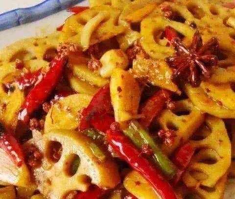 配料:藕500克,油1勺,鹽1撮,雞精2克,蔥薑蒜各適量,白糖1勺,陳醋2勺,甜椒4勺麻辣醬