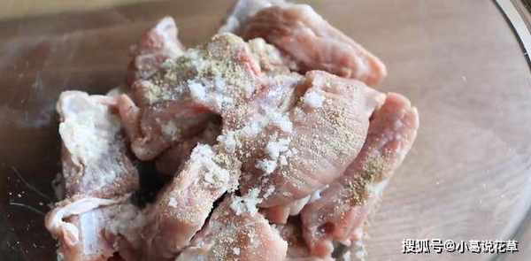 將排骨放入濾網瀝幹水分,撒上少許鹽和胡椒粉醃制10分鐘。如果味道有點淡,再加點鹽和胡椒粉。
