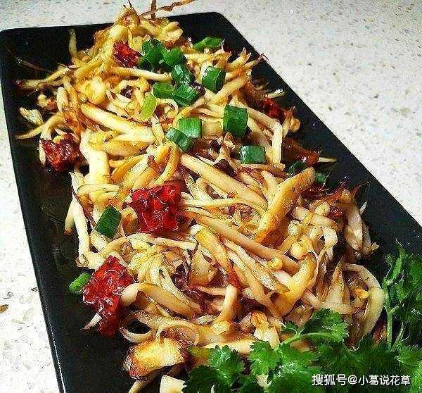 5、等杏鮑菇片變成金黃色,加入鹽和雞精調味,起鍋。