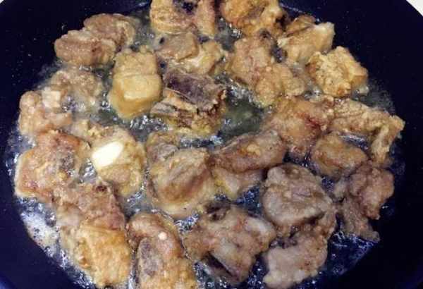 第三步,鍋中倒入適量的油,油溫高,放入排骨小火慢煎,炸至表面金黃即可撈出,撒上鹽和胡椒粉即可上桌。