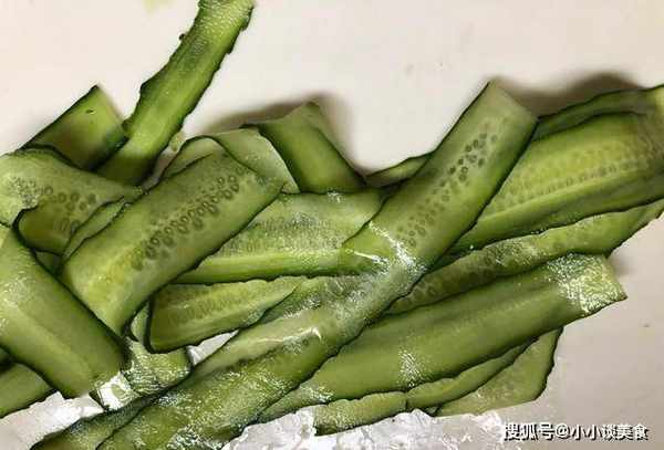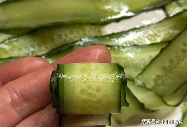 2、黃瓜洗凈,切成薄片。這根棍子不同於常態。它應該切成塊並且非常薄,這樣放在盤子上時會更貼合。如果有專業的切片工具,直接用工具切,切片又快又簡單。如果你剪它,小心不要傷到你的手。