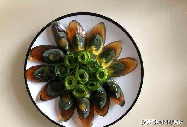 5、切四個皮蛋,盡量切一樣大小,這樣拌出來的菜會更漂亮。