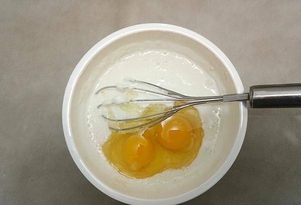 3、做面團,水加200克過篩的面粉和淀粉,150克雞蛋和成面團。(重要!!和面團的時候加少許水攪拌均勻,沒有小疙瘩就繼續加水,直到調稀,沒有小疙瘩)