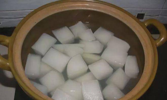 白蘿卜洗凈,切4~5薄片,放入小鍋內,加大半碗水,放火上燒開後,再改用小火煮5分鐘即可。等水稍涼後再給寶寶喝,此方治療風熱咳嗽、鼻幹咽燥、幹咳少痰的效果是不錯的,2歲以內的寶寶收到的效果更好。