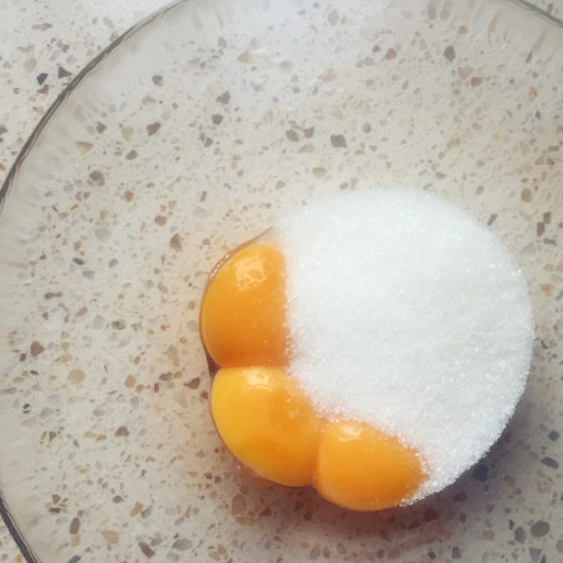 第3步、白砂糖加在蛋黃裡。