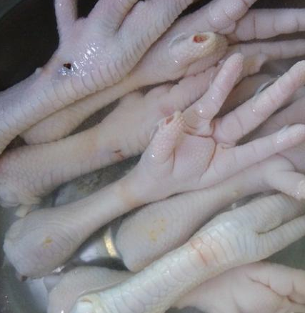首先雞爪入冷水泡十二小時,中途換水,剪掉指甲,入蔥薑水中焯水,撇去浮沫,稍煮片刻後,取出放涼