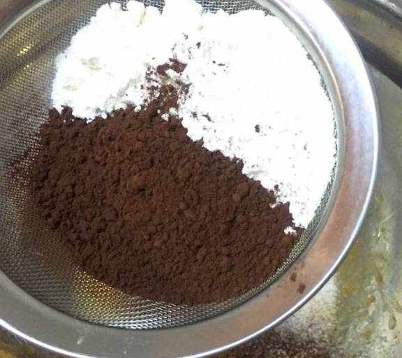 第4步、加入過篩的可可粉和低筋粉