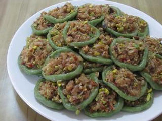 用米粉制成的餜胚子。然後準備餡料,跟我們做餃子似的,盛上剁碎並拌有米漿和調味品的五花表鮮肉、黃豆芽、目魚、竹筍絲、蘿卜絲等佐料蒸熟,再淋上熟豬油、撒上辣椒末、蔥花即成。它的味道極好,做得好就完全能達到粘不沾牙、韌而不硬的程度,邊上的菜是根據個人口味喜好加入的,自己可以改變餡料的搭配,完全跟我們北方的餃子一個樣子!