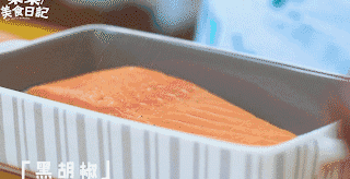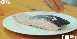 1.三文魚清凈擦幹,兩邊各撒一些黑胡椒和鹽入味