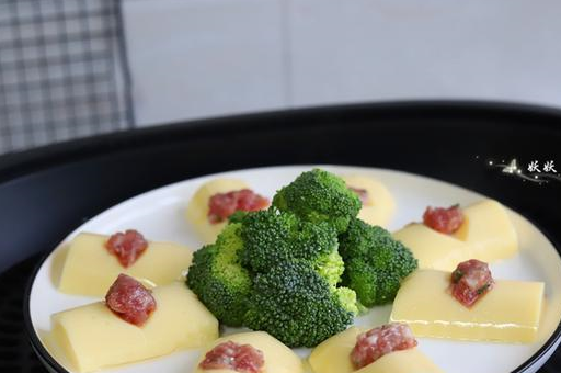 4,西蘭花洗幹凈,切成小塊,擺在日本豆腐中間。