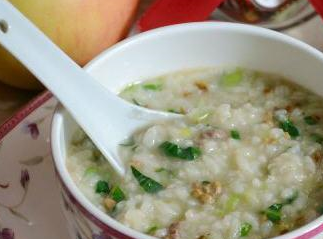 3.粥將熟時加蔥末、胡椒粉和鹽調味,再沸後用微火燜片刻即可。熱量483千卡