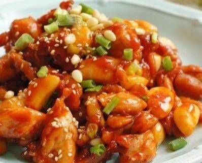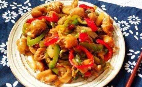 2.鍋內倒入比平時炒菜多一點的油,加熱至80%,然後倒入浸透的雞肉翻炒,不斷攪拌,直到雞肉變軟變硬,油浸透。