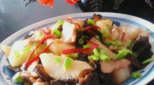 3、鍋裡放油,油熱後放入醃制好的肉片,撈出備用;4、餘油再燒熱,加入蔥末炒香,倒入瀝幹的山藥片、紅辣椒片,拌勻,加鹽調味;