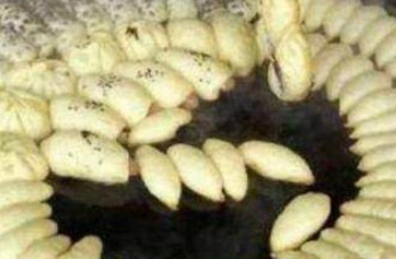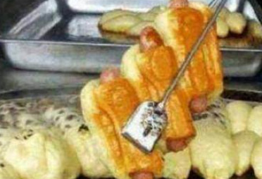 這個就是他們夫妻賣的小吃,將小麥粉面發酵,然後在面粉裡加蔥、薑、五香粉、香油、細鹽調制,面團做好後,切成一小塊一小塊的,每一塊都做成長方形的餅狀,裡面放一根香腸,然後卷好,這樣一個香腸卷就好瞭,然後全部做好瞭以後放入大鐵鍋裡面煎,煎至兩面金黃就好瞭。做出來色澤金黃,吃著外脆裡嫩,味道更是十裡飄香,讓人口水直流。夫妻的生意很好,他們用的過很大一鍋能做上百個,做好以後剛出鍋就被搶空。他們的生意是一天比一天好,現在月收入過萬。