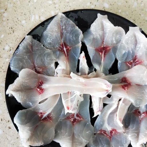 切蝴蝶片方法:隻需切兩刀,第一刀不切斷魚皮,第二刀再切斷。張開兩片魚肉就像蝴蝶一樣漂亮。