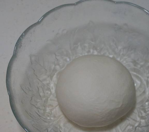 第5步、將面團揉圓,放在大碗中,蒙上保鮮膜,在溫暖處進行基礎發酵