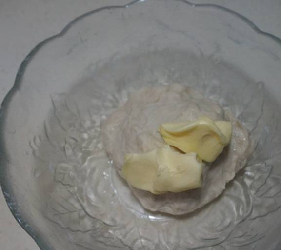 第3步、混合均勻無幹粉後,手揉光滑,再加入軟化的黃油