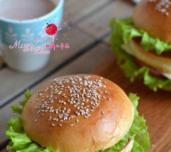 自制的漢堡,好吃又實在。提前做好漢堡胚,第二天一早,用料十足的大漢堡入肚兒,這一上午的能量滿滿的瞭!