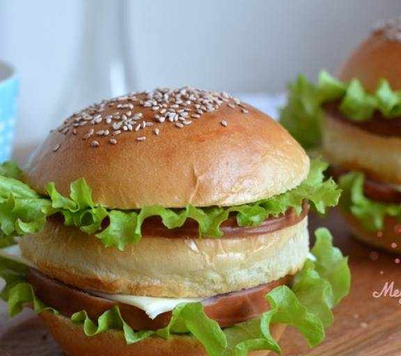 原料:高筋面粉、牛奶、酵母、白糖、黃油、表面刷牛奶、表面撒白芝麻、火腿腸、生菜葉、番茄沙司、沙拉醬、奶酪片。