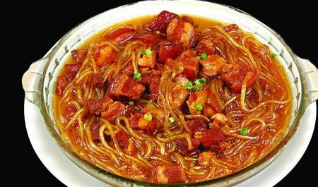 五、豬肉燉粉條,是東北菜的代表之一,富有特色的東北地區風味菜肴,深受南北方人的喜愛。燉好的後香氣撲鼻,肉香而不膩,粉條吸足瞭湯汁,滑溜溜帶點小筋道,非常好吃。豬肉燉粉條是“東北四大燉”的第一燉。東北的粉,那是純手工做出來的,土豆粉白中帶著點透明,粗細均勻,沒有疙瘩,和豬肉一起下鍋,絕對不會粘湯、碎掉,並且口感依然筋道、滑溜溜的,透明的還帶著肉香。秋冬季節熬一大鍋這個菜全傢都能管飽,一人兩碗吃得飽飽的。據說吃過這道菜的,才算是正宗東北人,你們贊同麼?假如晚上我請你吃飯,這幾道東北菜,你會選哪個?歡迎都來評論說說!