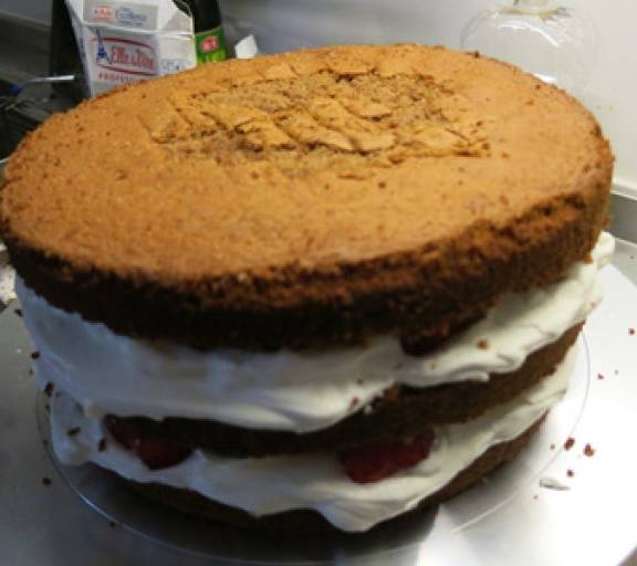 小英子心語:1、全蛋在40度左右的溫度下最容易打發,所以在打發全蛋的時候(尤其是冬天),需要把打蛋盆坐在水裡加溫,使全蛋更容易打發,註意水一定不能過熱,否則會成蛋花的哦。2、面粉一定要分三到四次加入,攪拌的時候一定要從底部向上翻拌,絕對不可以畫圈攪拌,否則雞蛋一定會消泡的。3、做這種裸蛋糕,淡奶油不可以打到10分,打到8分可以抹面的狀態就好瞭,打硬瞭不好抹開,也不容易成自然流淌的狀態。