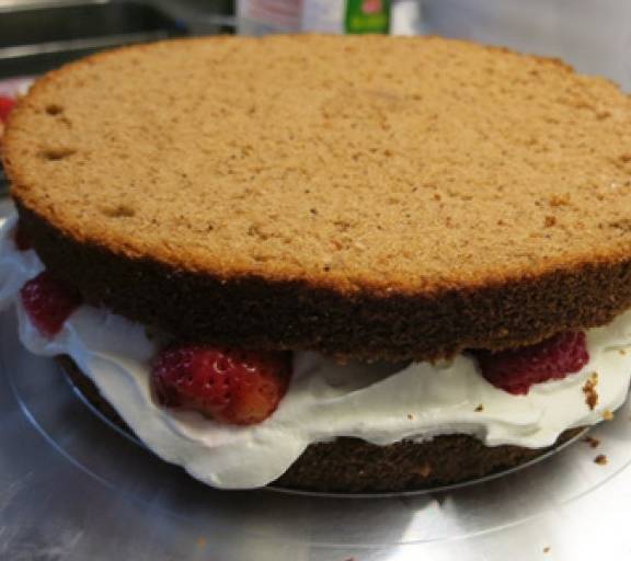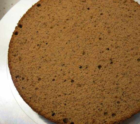 第20步、取一片蛋糕放在裱花臺上