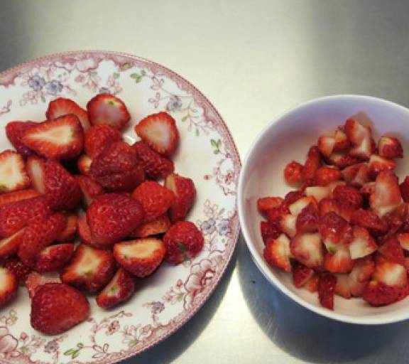 第17步、將草莓切成小塊做夾心用