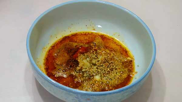 這碗面好吃的關鍵就在於這碗涼拌汁上,用這個方法調,香辣好吃,特過癮!