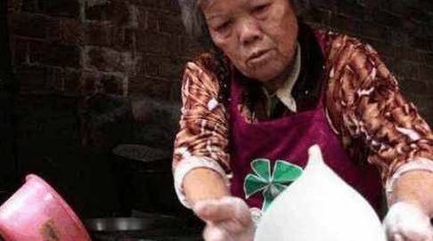 朋友看過之後馬上就發照片過來給我看,小妖剛開始看到的時候還以為這個大媽是在做什麼手藝呢。沒想到這東西居然是一種小吃,雖然大媽的小攤不是很起眼,但是聽朋友說到那裡看新奇拍照的人很多。其實這種小吃在那裡是叫做“大煎堆”。