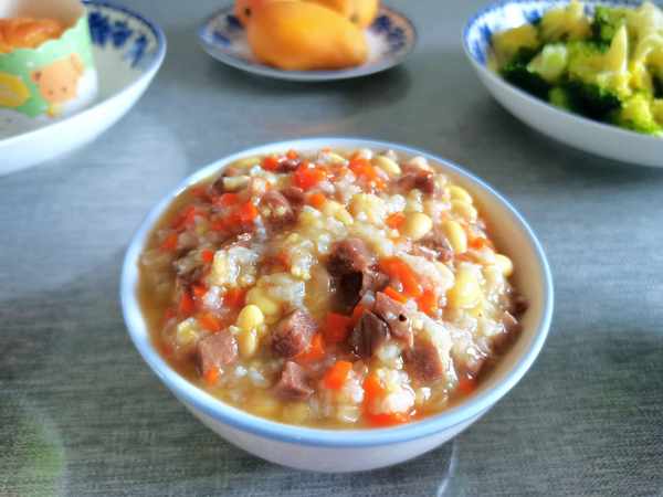 牛肉黃豆蔬菜肉粥做法: