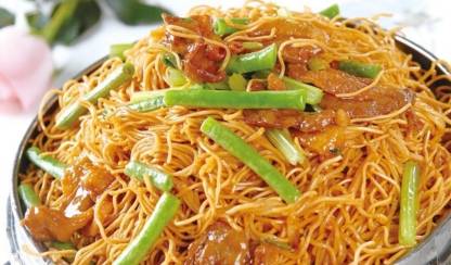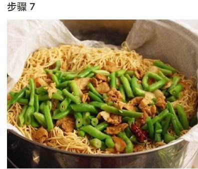 河南蒸鹵面制作原料主要有細切面、豇豆、五花肉等,味道美味,營養也很豐富,是一道傢常的特色美食。