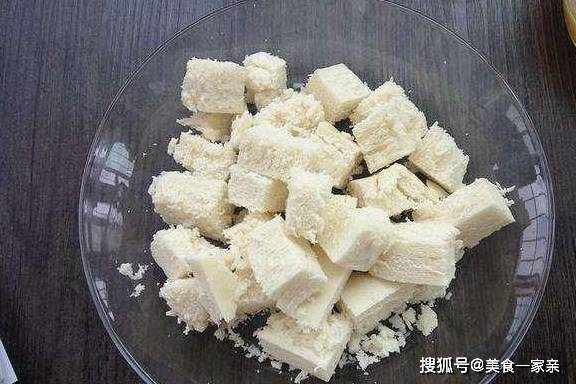 將饅頭切成方塊狀。