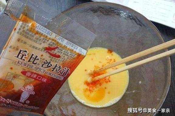 主料:丘比沙拉汁香辣味15g、饅頭1個、雞蛋2個、鹽一捏、孜然一勺、辣椒面一勺。