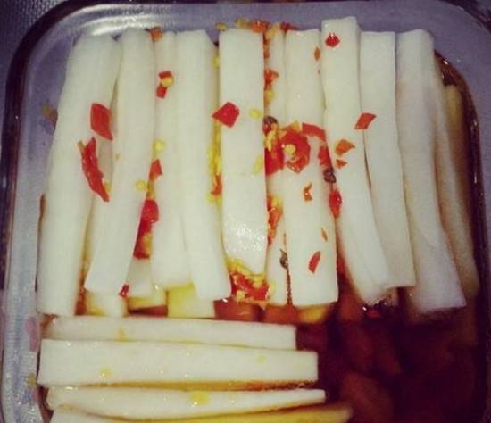 看出是什麼瞭嗎?是不是顏值太差,但是很美味哦,是我改良過的醃制蘿卜條,之前群裡師傅教過這道菜,部分同學覺得準備的材料太復雜,所以這次特地出瞭道簡單又好吃的食譜,配粥、做小菜,或者配米飯都是非常棒的。很多做過的同學直呼太好吃啦,所以沒做過的趕緊試試吧!!