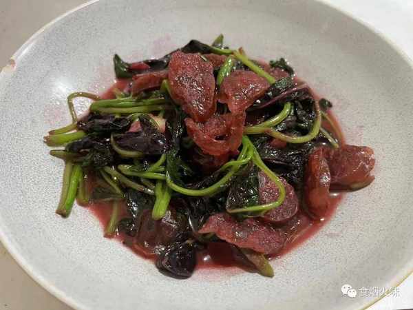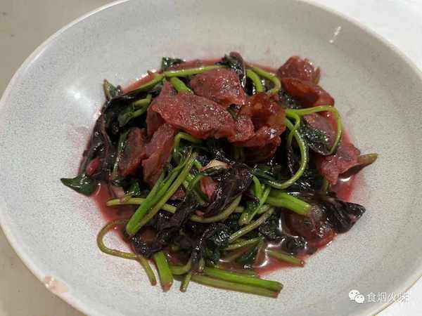 炒出來的莧菜味道特別的鮮,因為裡面加有臘肉,口感也是非常的棒。像莧菜中含有營養成分很高,現在也正是它的季節,平時遇到的話我們可以摘一點回來,這樣子炒一炒,既好吃又下飯。