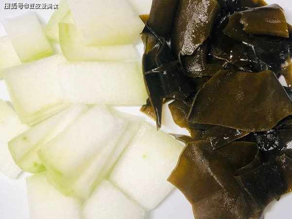1、幹海帶清洗幹凈,放入清水中泡發。冬瓜削掉皮,挖掉瓤,清洗幹凈,切成片。海帶泡好後也切成塊。