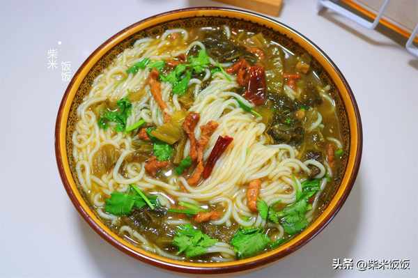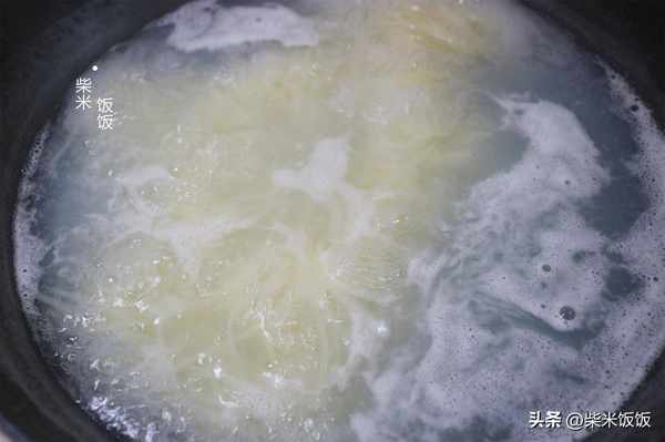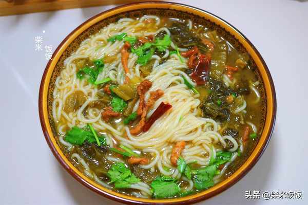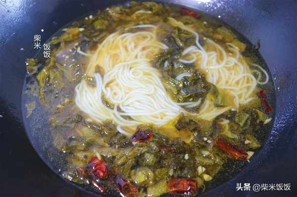 2,如果是早上吃,可以頭一天晚上將米粉用涼水浸泡一晚。泡軟的米粉直接放在炒好的酸菜湯裡煮即可。