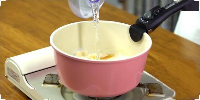 6、再加水,沒過所有的食材。大火燒開,為瞭防止牛奶粘鍋,所以燒開就可以關火瞭。