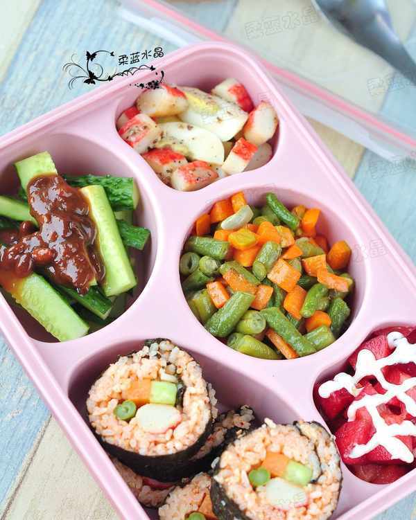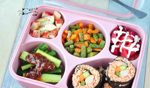 自己帶飯,當然要健康豐盛些,這樣才容易調動起上班的積極性。很喜歡韓餐的豐盛感,小盤小碗擺滿一桌,雖然都是些咸菜。自己置辦便當,當然要往豐盛瞭發展。