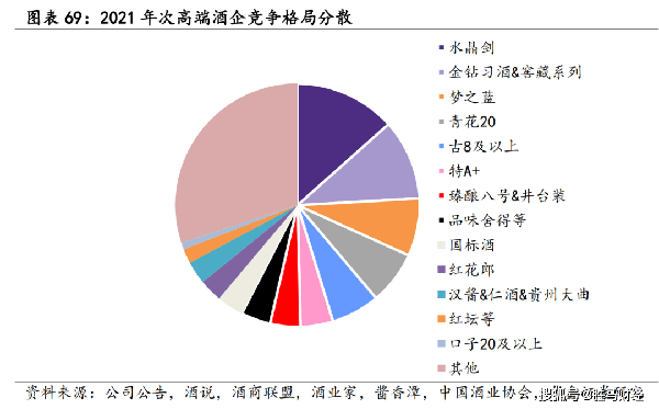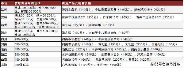 按照實現全國化策略,可以將主打次高端價格帶的酒企分成兩類。一類是通過覆蓋不同價格帶,產品不斷迭代升級以實現輪動放量,典型如洋河股份、古井貢酒均是采用這一策略;一類是靠主要大單品進行放量,並依托足夠廣的渠道實現全國化覆蓋,典型如坐擁水晶劍的劍南春、打造出青花20的山西汾酒。