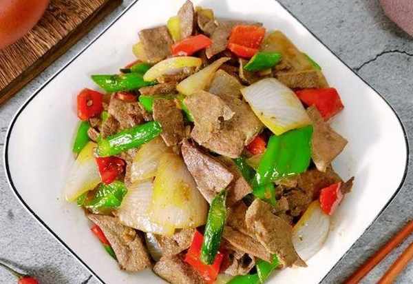 豬肝800g、洋蔥1個、蘆筍4個、生薑1塊、紅椒1個、青椒1個、食用油30克、生抽3勺、鹽3勺、白糖2勺。