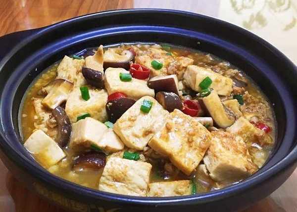 香菇適量、豆腐適量、肉末適量、蔥適量、幹辣椒適量、薑適量、蒜適量、鹽適量、生抽適量、老抽適量、料酒適量、蠔油適量、水淀粉適量、雞精適量。