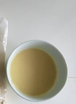 2.玉米面加水調成糊狀,用勺子舀起,成順滑流淌狀