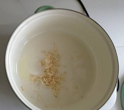 3.電磁爐來到600火力,鍋中放入玉米油,放入蝦皮煸香,盛出備用